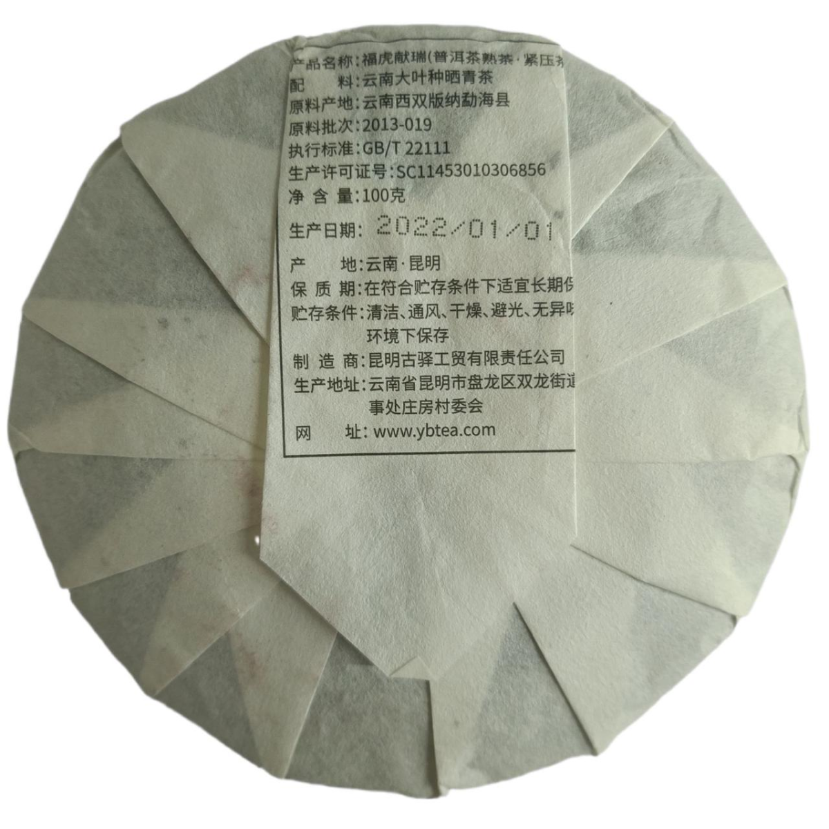 У виробництві використовують ферментоване листя з гірських районів Юньнаню. Після збору чай проходить ферментацію, витримку та пресування у круглі шайби, що забезпечує довге збереження аромату та смаку.